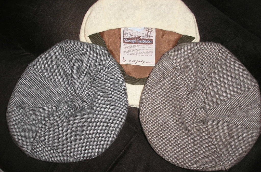 Traditional tweed caps and one summer one for golfing….my dad used to wear the gray one.